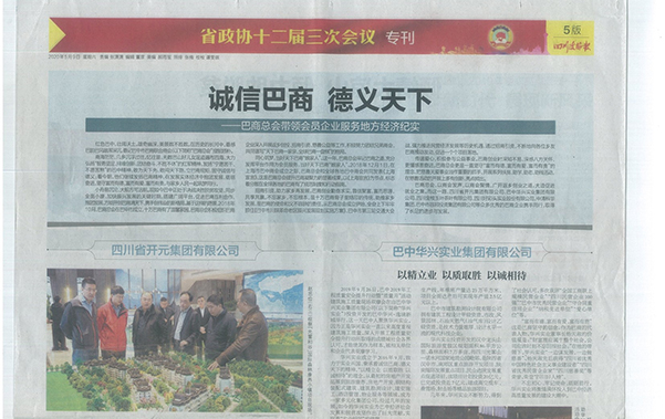 2020年2月8日,巴中市委印發巴委[2020]2號文《中共巴中市委 巴中市人民政府關于表彰促進民營經濟發展先...