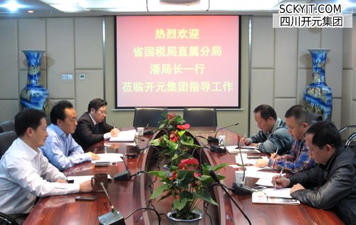 4月16日,四川省國稅局直屬分局潘局長一行親臨開元集團進行現(xiàn)場調(diào)研,與集團董事長、總裁趙思儉,集團董事等進行了會談。