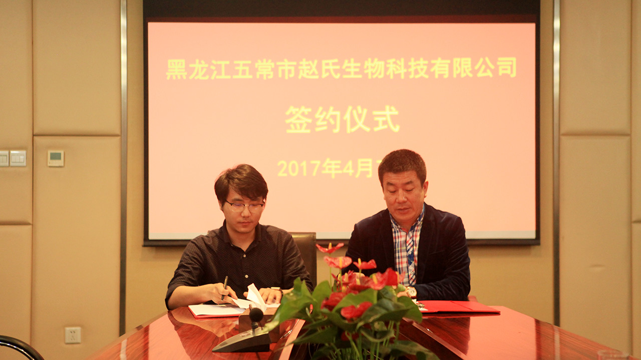 四川匯農新創生物科技有限公司董事長、總經理趙文承與黑龍江五常大型種植基地負責人簽訂合作協議。