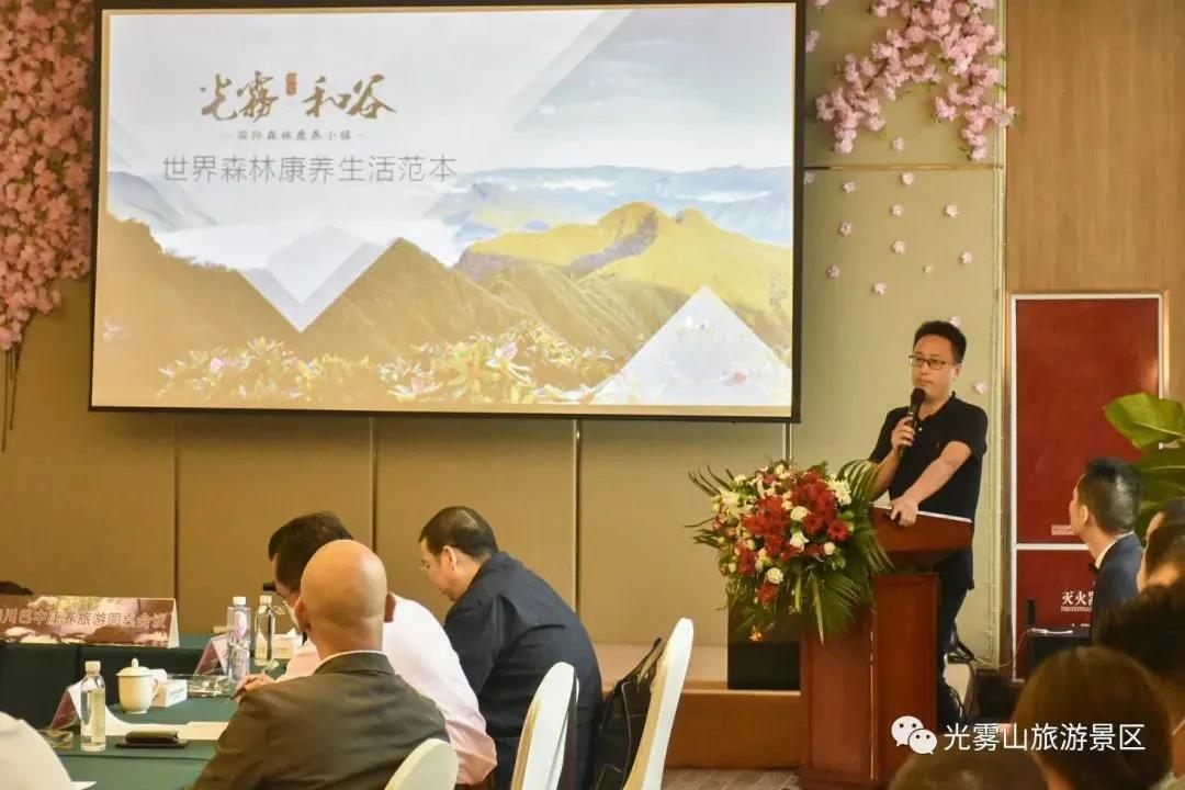 會上,光霧山風管處副主任、光霧山鎮鎮長熊靜芳對與會人員表示歡迎并致辭,光霧山旅游公司總經理羅尚志推介了光霧山康養旅游產品及線路,開元集團康養事業部營銷中心總經理湯春介紹了光霧和谷康養旅游產品。