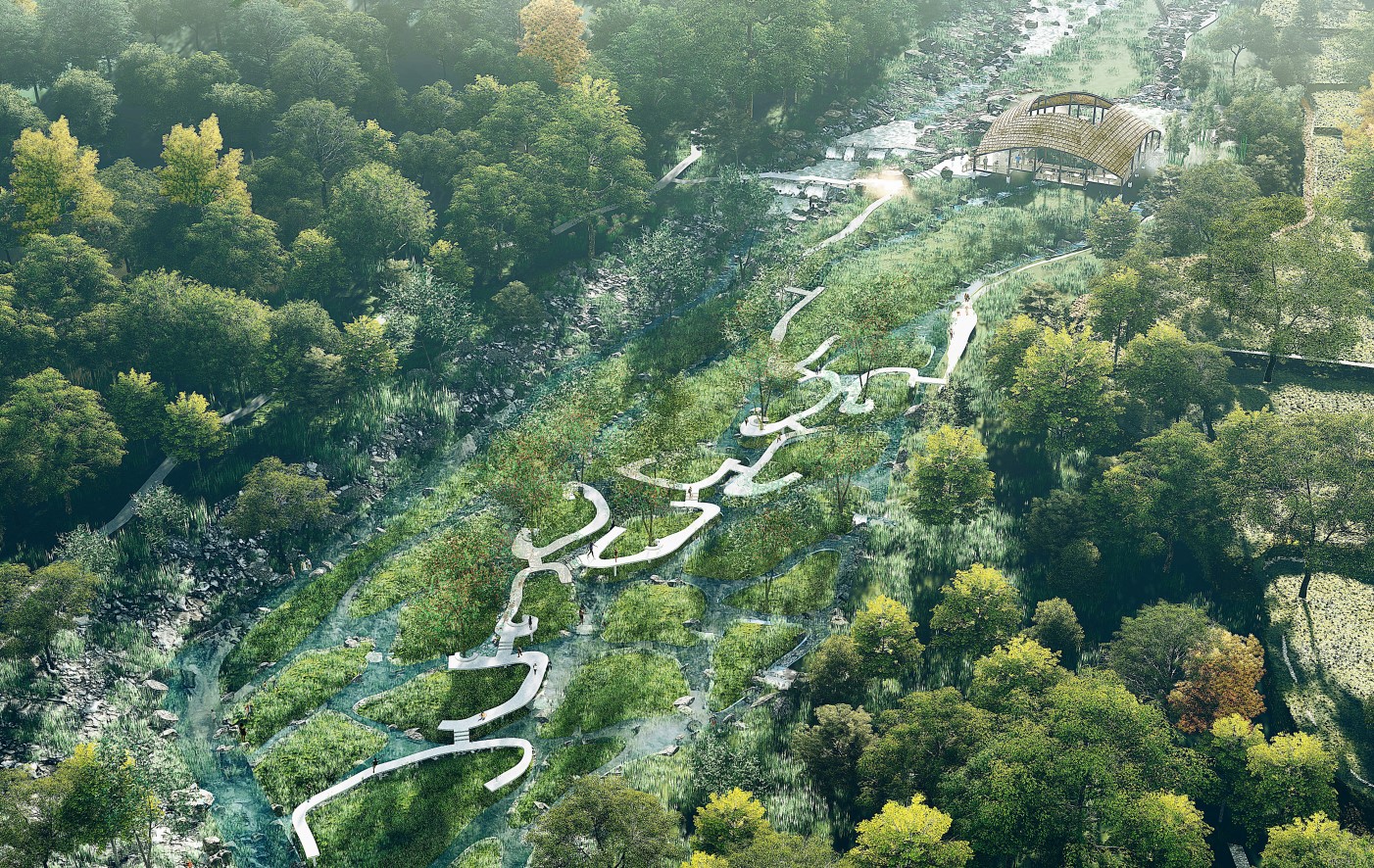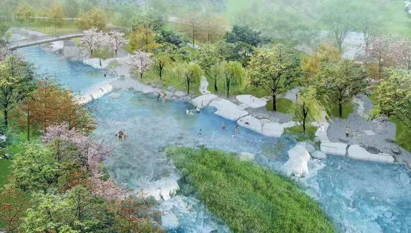 此次率先動工的是一期項目馬尿河景觀工程,景觀設計由廣州土人景觀設計公司設計,建設工期計劃115天,進行自海花溝口以上1.3公里的景觀打造,建設面積約80,000m²,計劃今年11月底竣工驗收。