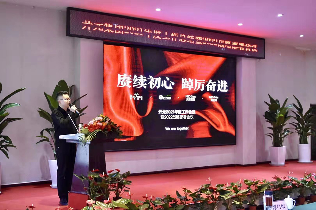 會議在全體開元人莊嚴的國歌聲中正式拉開帷幕。集團總裁杜勇先生代表集團領導班子向大會作《集團2021年度工作總結及2022年工作規劃》的報告,報告主題為“筑牢生存根基 積蓄發展動力 在新的起點上加快推動集團發展行穩致遠”。