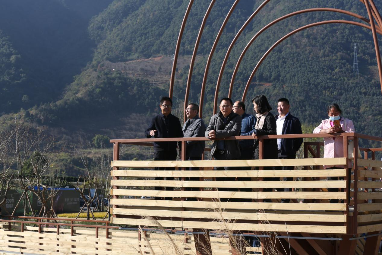 李總陪同客戶一同游覽了公園溪地景觀。在參觀過程中,李總向客戶重點介紹了海花溝特有的安寧河谷氣候以及四季豐富的特色果蔬產(chǎn)出,并帶領(lǐng)客戶登上瞭望臺遠眺螺髻神山。