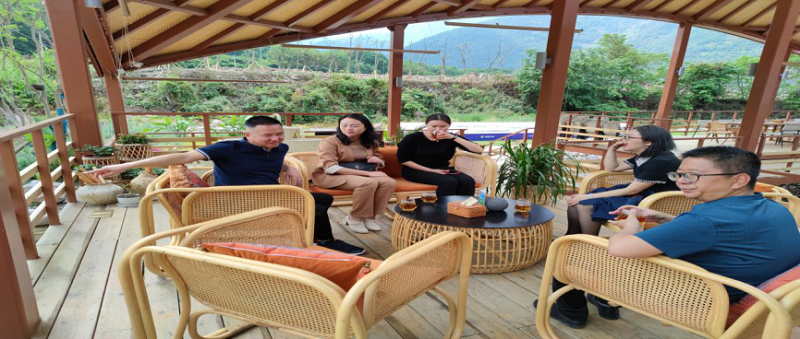 參觀樣板房后,李總邀請客人到澗茶臺小憩,大家一邊品茗,一邊暢談了本次參觀的感受,同時在聽取營銷置業顧問的深入介紹后,客人一行表達了濃厚的置業意向。