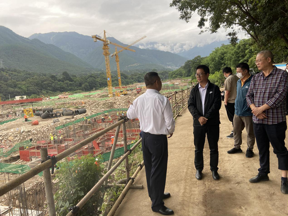 2022年6月15日下午,涼山州德昌縣縣委書記任賢明書記帶隊到NEO Gaia海花溝項目檢查工程進度。樂躍鎮黨委書記銀德志、重大項目督查辦公室、自然資源局、文體廣電旅游局、鳳棲和谷副總經理李濤與中建公司項目經理方總等公司工作人員一起熱情接待了任書記的到來,并陪同任書記一行人檢查項目工程進度。