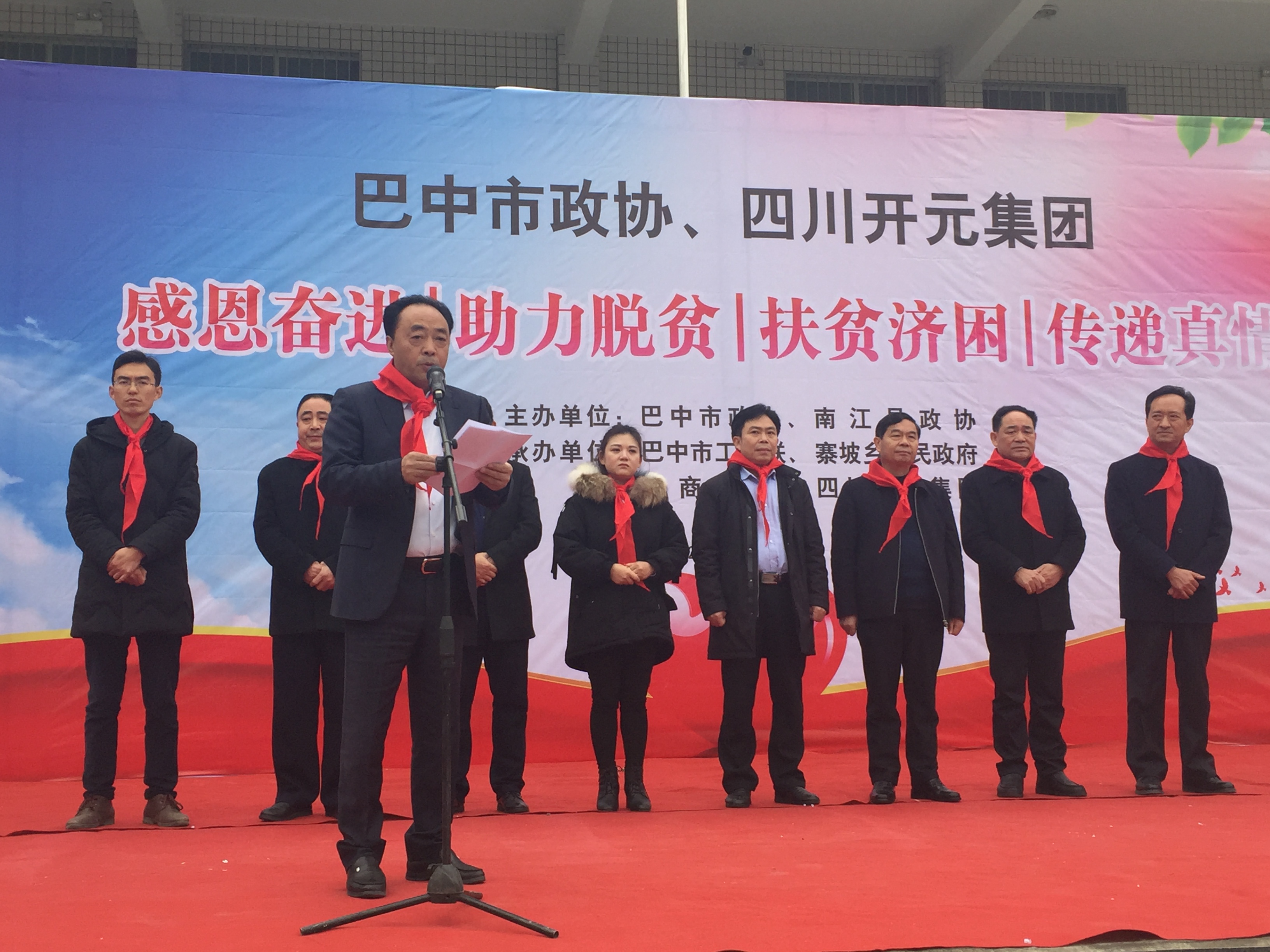 2月22日,在巴中市政協“創引幫”活動的感召下,由市政協、四川開元集團主辦,市工商聯、南江縣委縣政府,南江縣政協、寨坡鄉黨委政府、巴商總會和四川南江光霧和谷旅游開發公司協辦的寨坡鄉助學、助老、助殘活動在寨坡小學隆重召開。